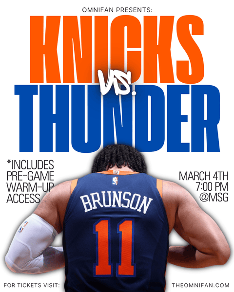 Join us at the World's Most Famous Arena on March 4th at 7pm, to watch your NY Knicks take on the reigning NBA champs, the OKC Thunder! This matchup brings a Finals-tested Thunder squad to the Garden, led by Shai Gilgeous-Alexander and Chet Holmgren. Expect a fast, physical, and high energy game as Jalen, KAT & co. go head-to-head with one of the league’s most dynamic teams!